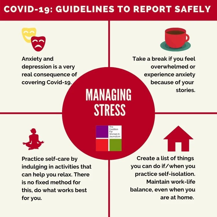 Journalists covering the subject are not only dealing with risks to their physical wellbeing. Stress and anxiety are a very serious consequence of reporting on the pandemic, given that reporting has to often look into the very human cost of its spread.