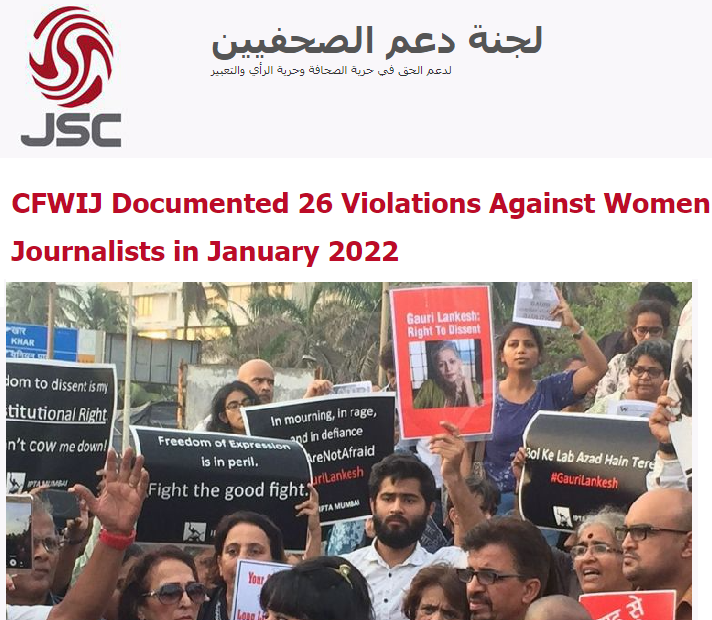 Throughout the month of January 2022, the Coalition For Women In Journalism documented 26 cases of violations against women journalists. These included detentions, legal harassment and physical assaults in the field, among other attacks on press freedom and women journalists reporting from different parts of the world.