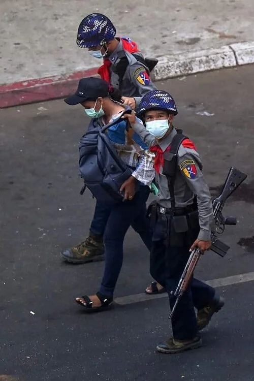 Myanmar Now's multi-media reporter, Ms.Kay Zon Nwe, was taken away by the police while she was live-streaming a protest crackdown around noon at Myaynigone Junction in Yangon. We are still trying to find out her whereabouts. #WhatsHappeningInMyanmar pic.twitter.com/cZwHJqvCCG