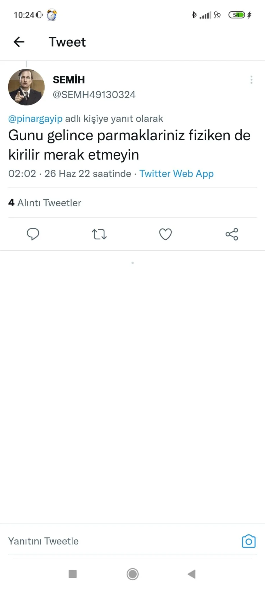 Pınar Twitter’dan yaptığı açıklamada aldığı tehditi paylaşmış, “Bir avukat, tacizci müvekkilinin haberini yaptığım için parmaklarımı kırmakla tehdit ediyor. Korkumuz olsaydı gazeteci olmazdık! Ama bu burda dursun herhangi bir şey olursa sebebi de Semih midir nedir bununla tacizci müvekkilidir.” ifadelerini kullanmıştı.