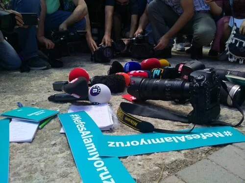 Tarih: 29 Haziran, 2021Available in: 🇬🇧 EngishTürkiye’de gazetecilere yönelik giderek artan polis şiddeti ve mevcut iktidarın uyguladığı politikalara karşı basın meslek örgütleri eş zamanlı protesto düzenledi. 15 örgütün ortak yaptığı açıklamada ‘Nefes alamıyoruz’ denildi. Gazetecilikte Kadın Koalisyonu (CFWIJ) yapılan açık çağrıya katılıyor, yetkililerden gazetecilerin özgürce mesleklerini yapabilecekleri bir ortam sağlamalarını talep ediyoruz.